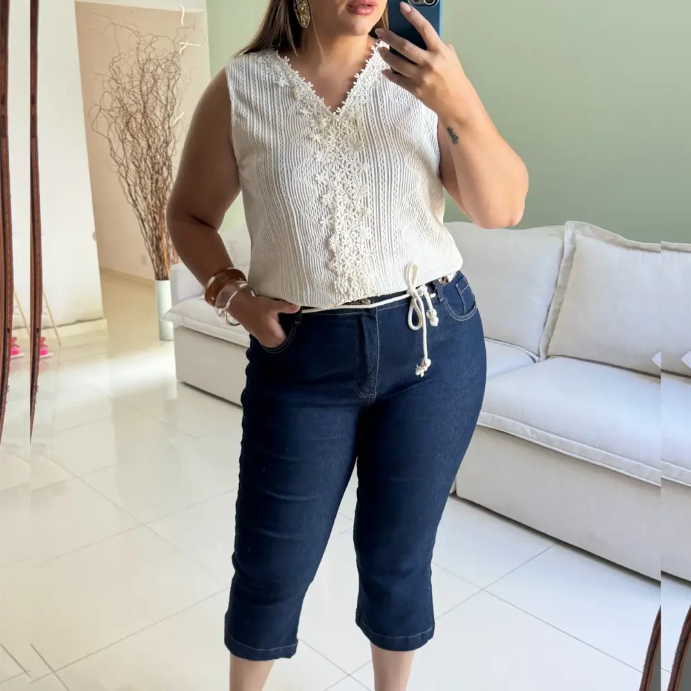 Jaqueta Feminina Plus Size Ref 13589 Jeans - 48
