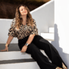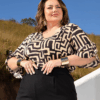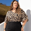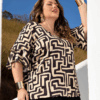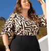 Blusa Feminina Manga Curta Plus Size Ref 700869 Bege Preto