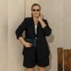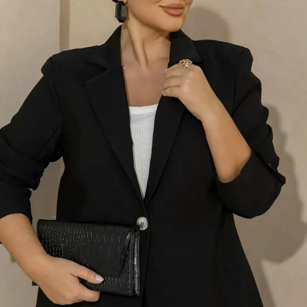 O blazer preto que resolve qualquer look. Com modelagem de alfaiataria e caimento impecável, ele entrega elegância imediata sem esforço. Versátil, atemporal e perfeito pra compor desde produções mais formais até looks modernos e estilosos.