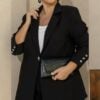 Preto é investimento certeiro. Esse blazer é aquele tipo de peça que a cliente usa MUITO — do trabalho ao jantar. Se montar conjunto com peças da mesma cor, você aumenta o ticket fácil.