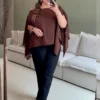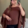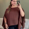 Blusa Feminina Plus Size Manga Curta Ref 207372 Marrom IRIS - 52