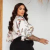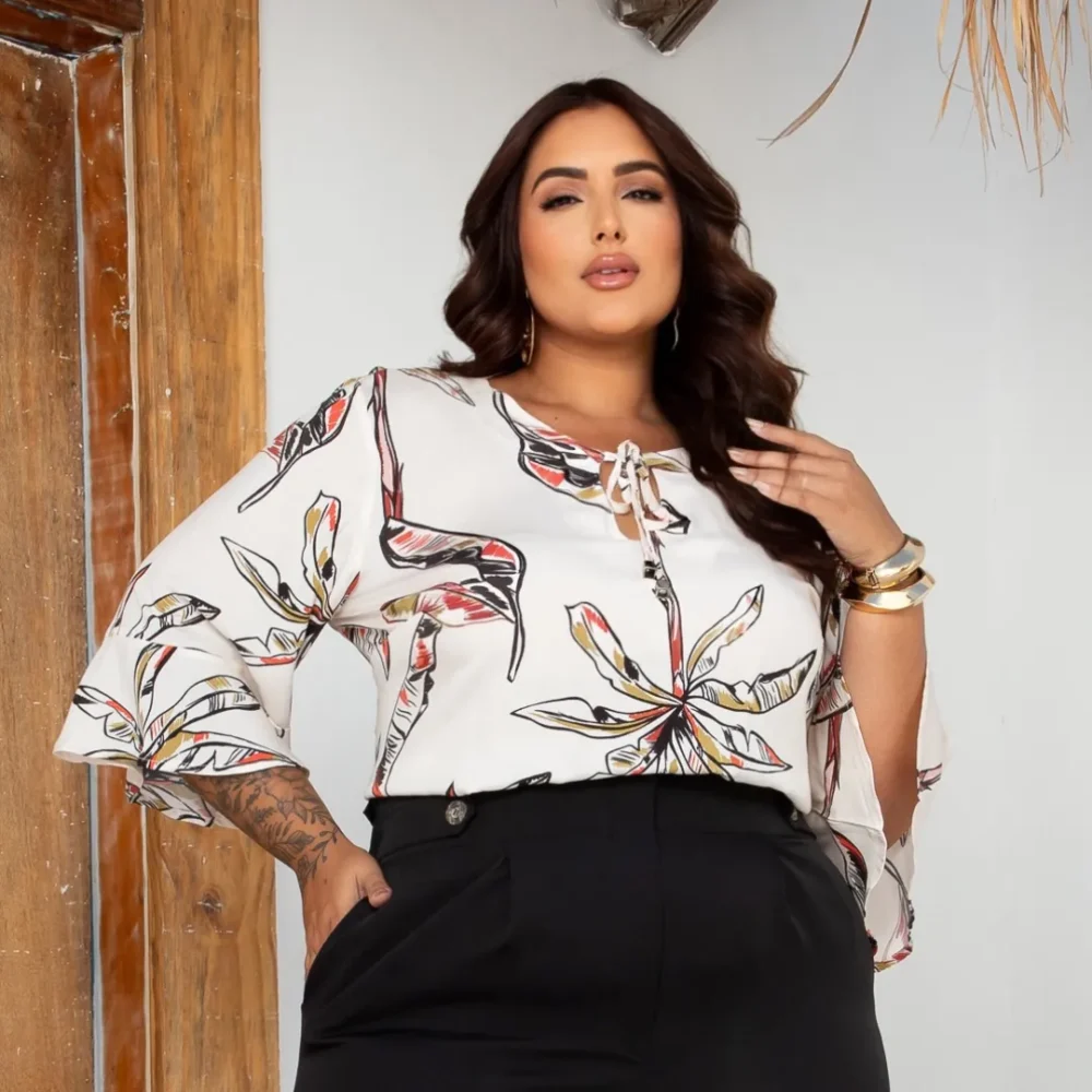 Blusa Feminina Manga Curta Plus Size Ref 700896 Estampa Bege - 50