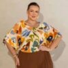 Blusa Feminina Manga Curta Plus Size Ref 700927 Estampa Bege