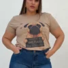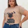 T-shirt Feminina Manga Curta Plus Size Ref Puggy Bege Mocha