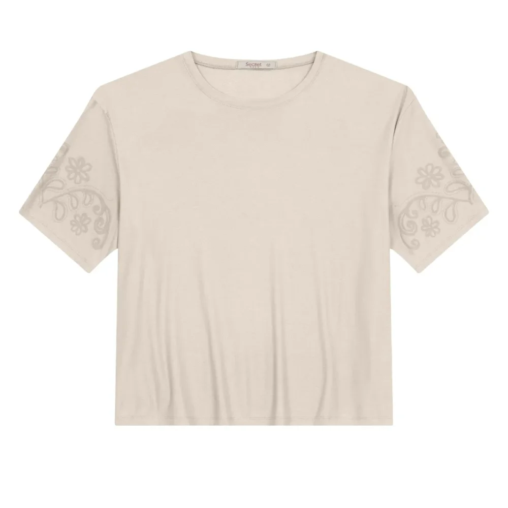Blusa Feminina Manga Curta Plus Size Ref S01895 Bege