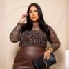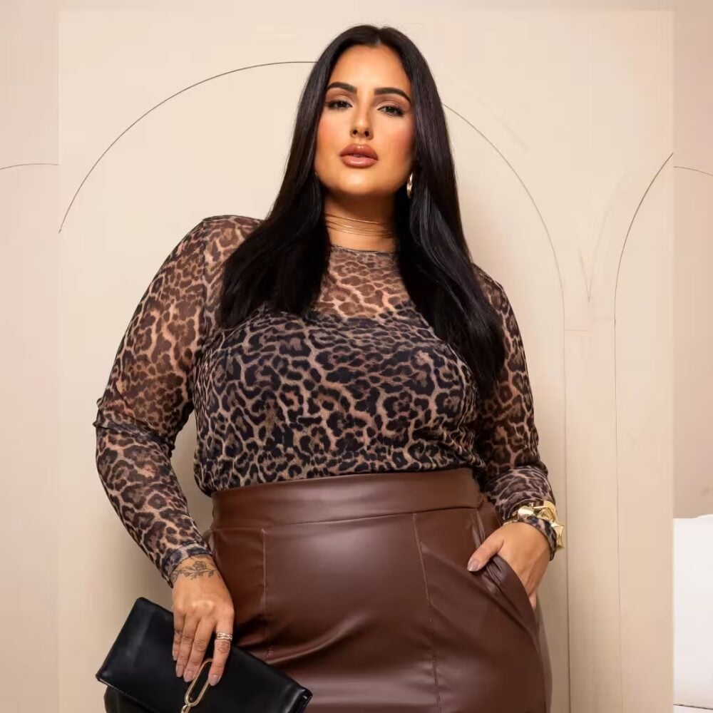 Blusa Feminina Manga Longa Tule Plus Size Ref 206941 Estampa Onça