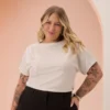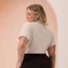 Blusa Feminina Plus Size Manga Curta C5137 Off White - 50
