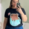 T-shirt Feminina Plus Size Manga Curta Capivara Preto