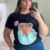 Blusa Feminina Plus Size Manga Curta Capivara Preto