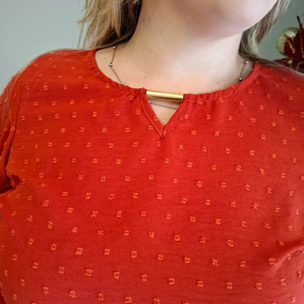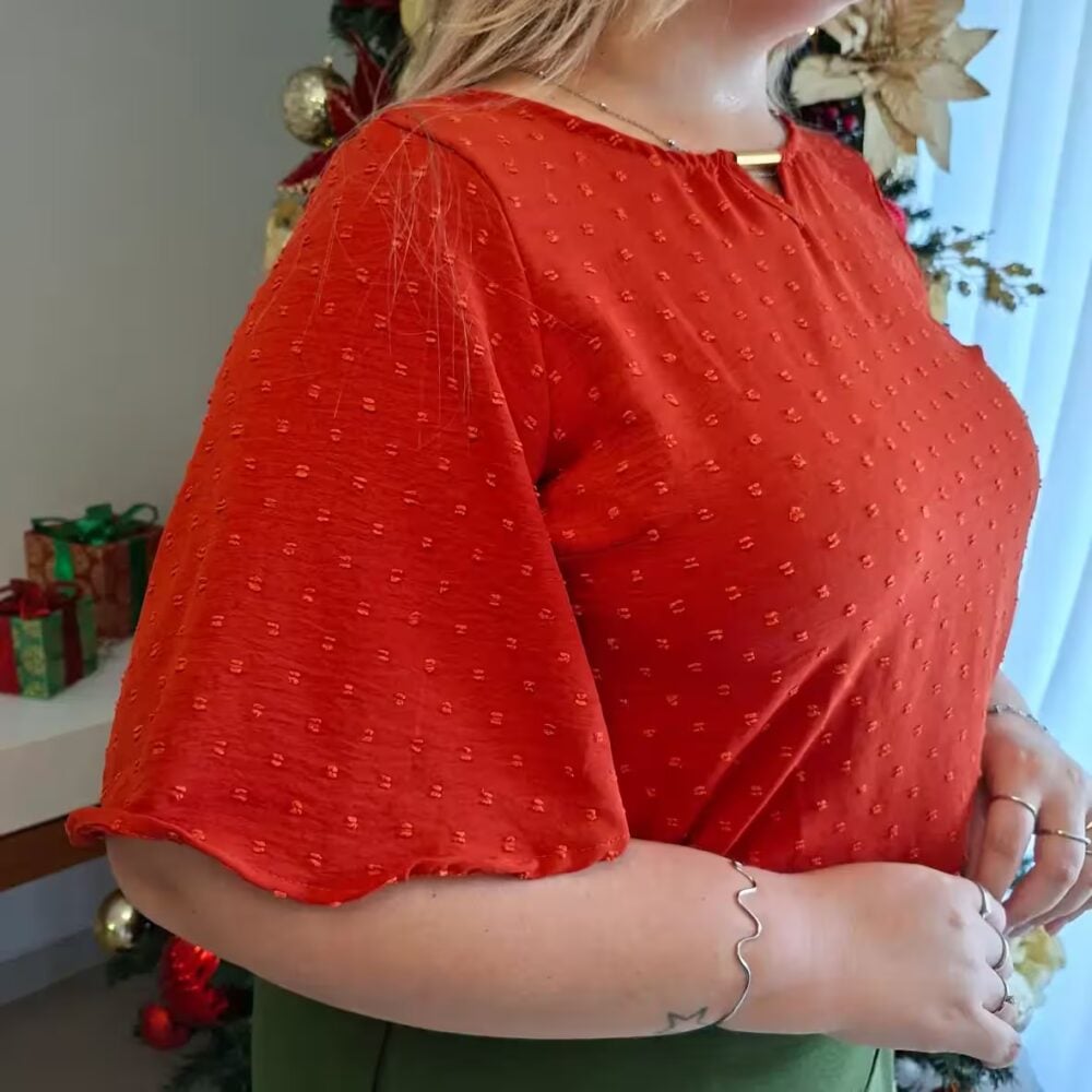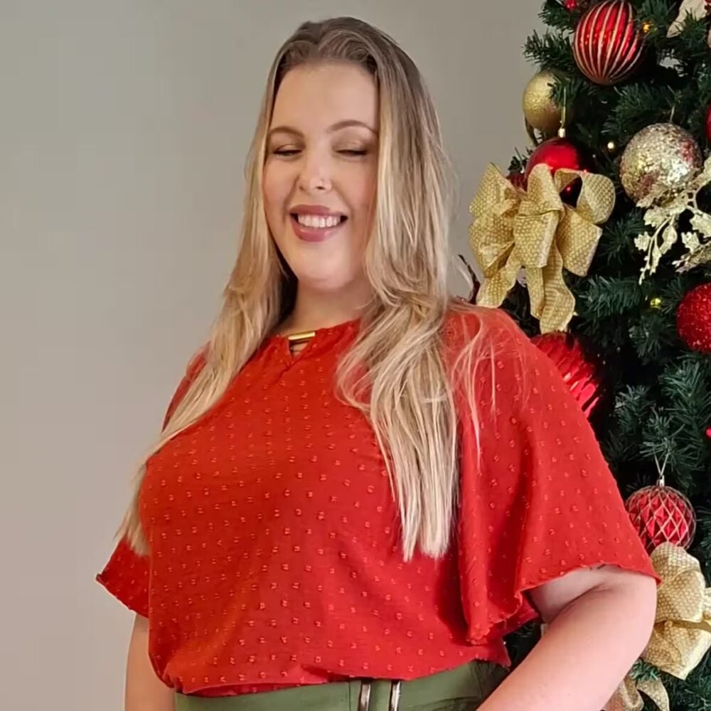 Blusa Feminina Plus Size Manga Curta Ref 207440 Ferrugem - 46