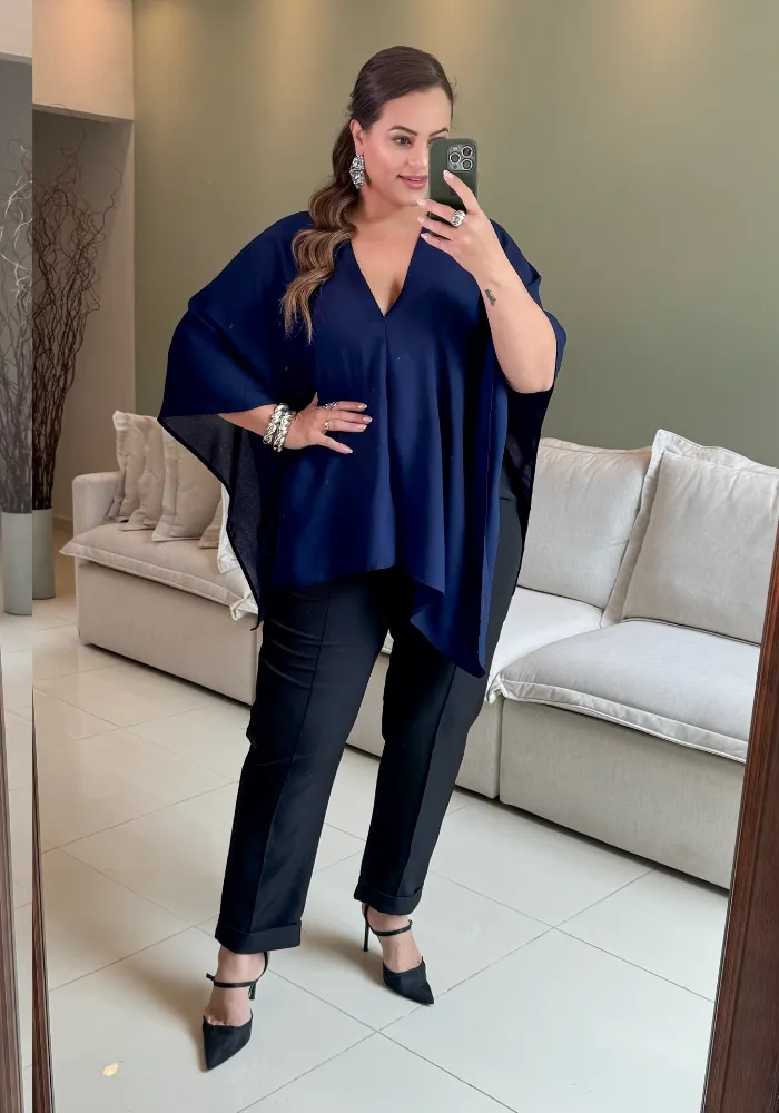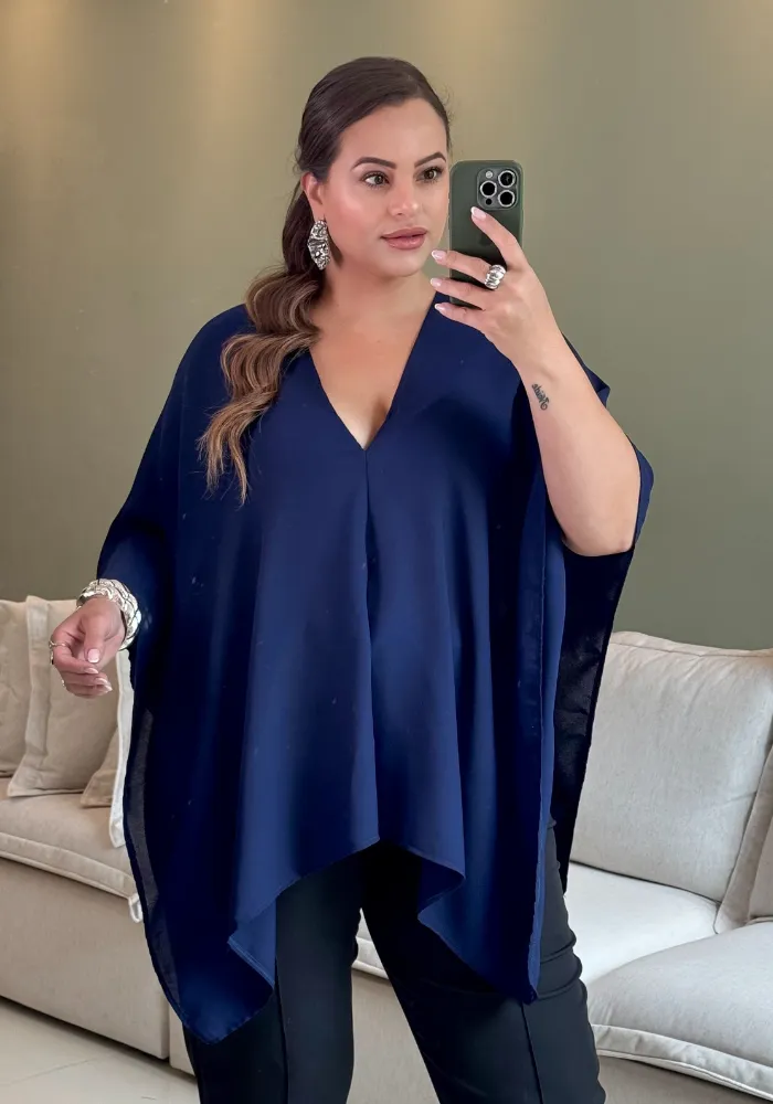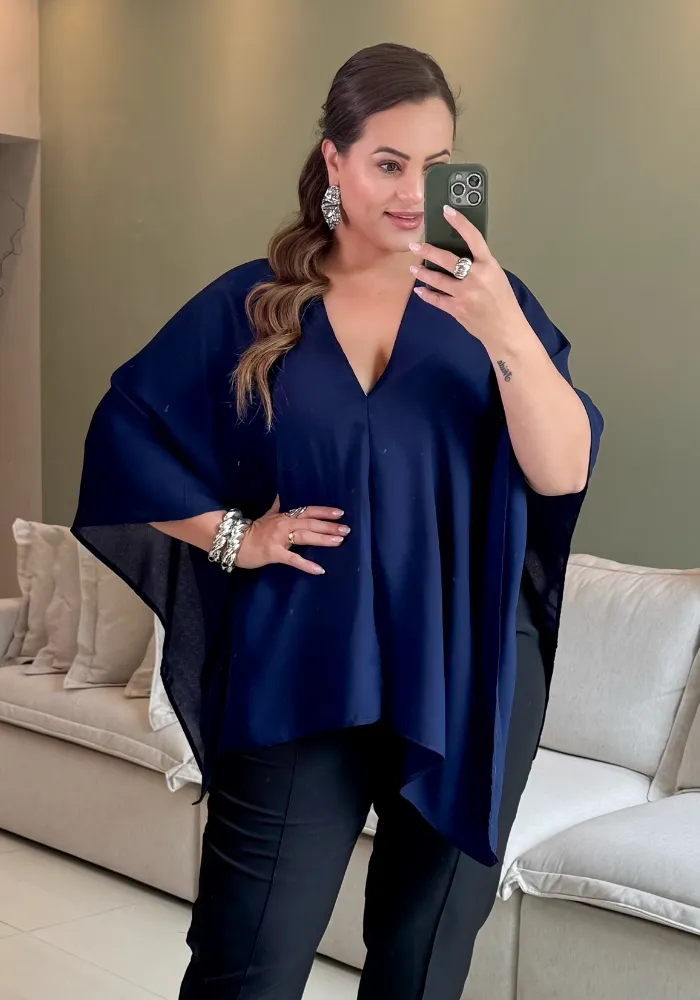 Blusa Feminina Plus Size Manga Curta Ref 27372 Marinho