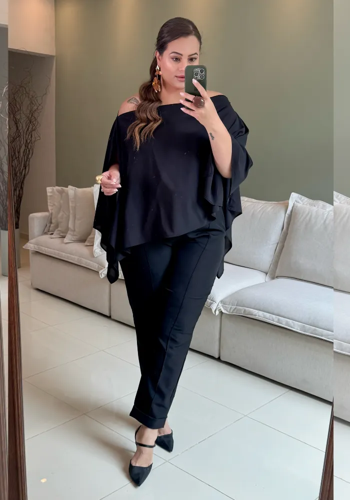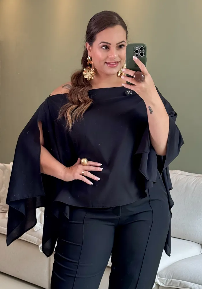 Blusa Feminina Plus Size Manga Curta Ref 27372 Preto