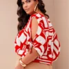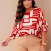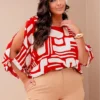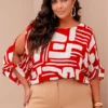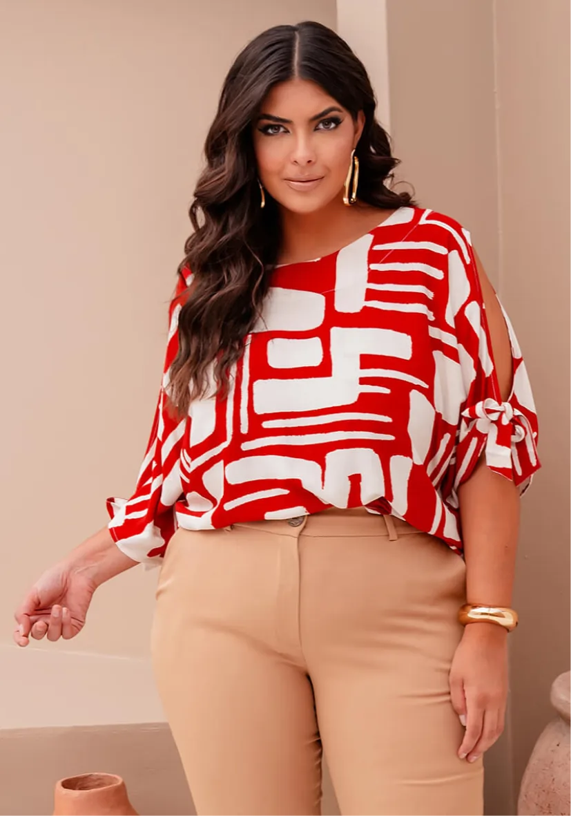 Blusa Feminina Plus Size Manga Curta ref 700849 Vermelho - 50