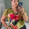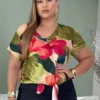 Blusa Feminina Plus Size Manga Curta Ref BMM-008 Estampa Verde - 52