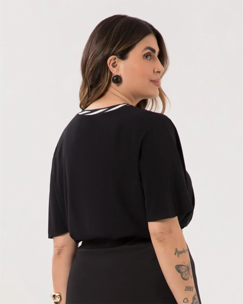 Blusa Feminina Plus Size Manga Curta Ref C0309 Goiaba