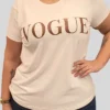 T-shirt Feminina Plus Size Manga Curta Vogue Off White - 56