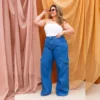 Calça Feminina Wide Leg Plus Size Ref 21121 Jeans - 52