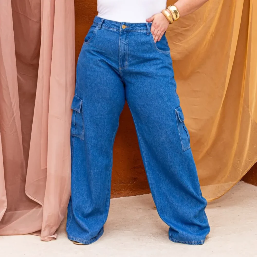 Calça Feminina Wide Leg Plus Size Ref 21121 Jeans
