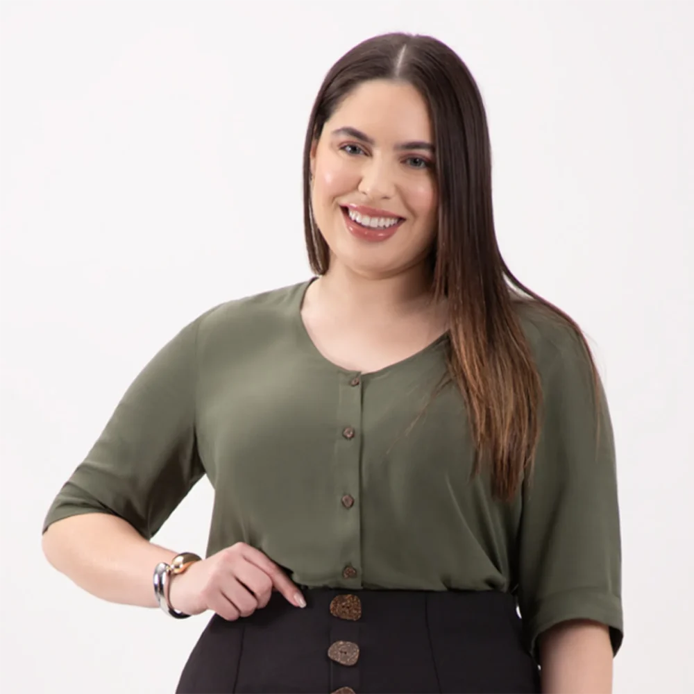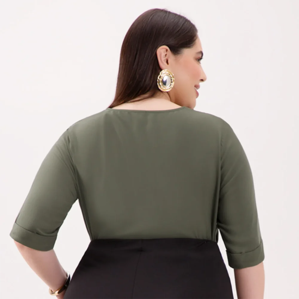 Camisa Feminina Plus Size Manga 3/4 Ref 69179 Laranja