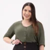 Camisa Feminina Plus Size Manga 3/4 Ref 69179 Laranja - 52