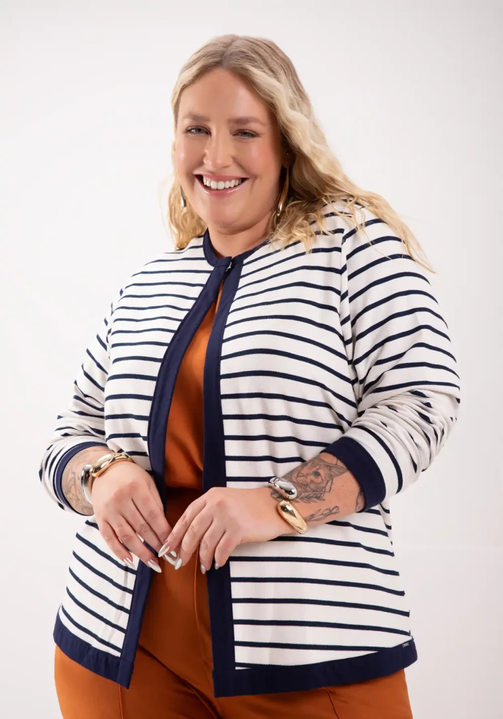 Cardigan Feminino Plus Size Ref 69187 Off White
