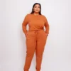 Conjunto Feminino Inverno Blusa Manga Longa + Calça Plus Size Ref 12105 Camelo
