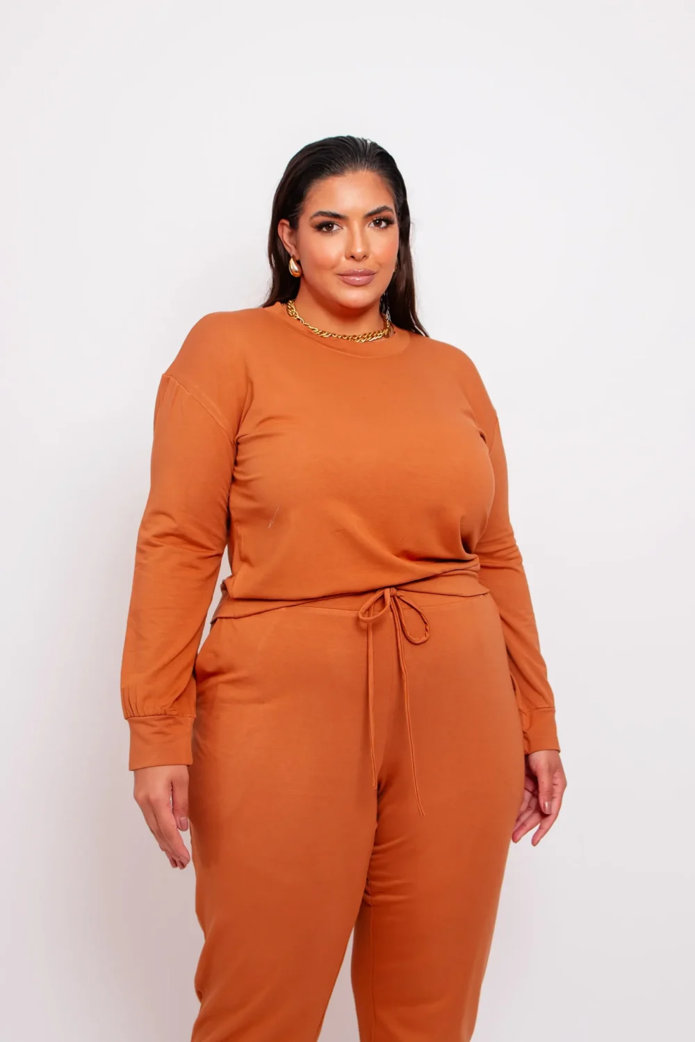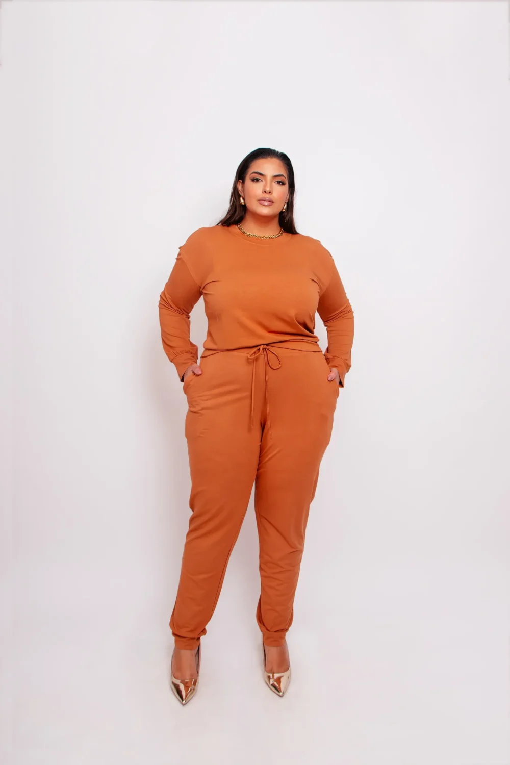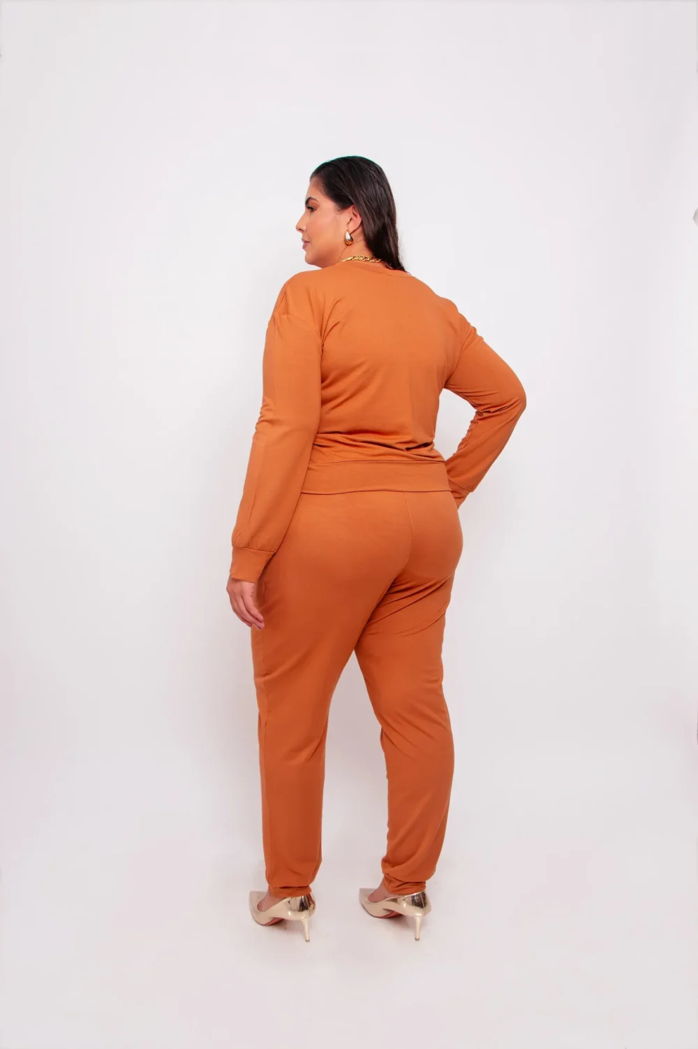 Conjunto Feminino Inverno Blusa Manga Longa + Calça Plus Size Ref 12105 Camelo