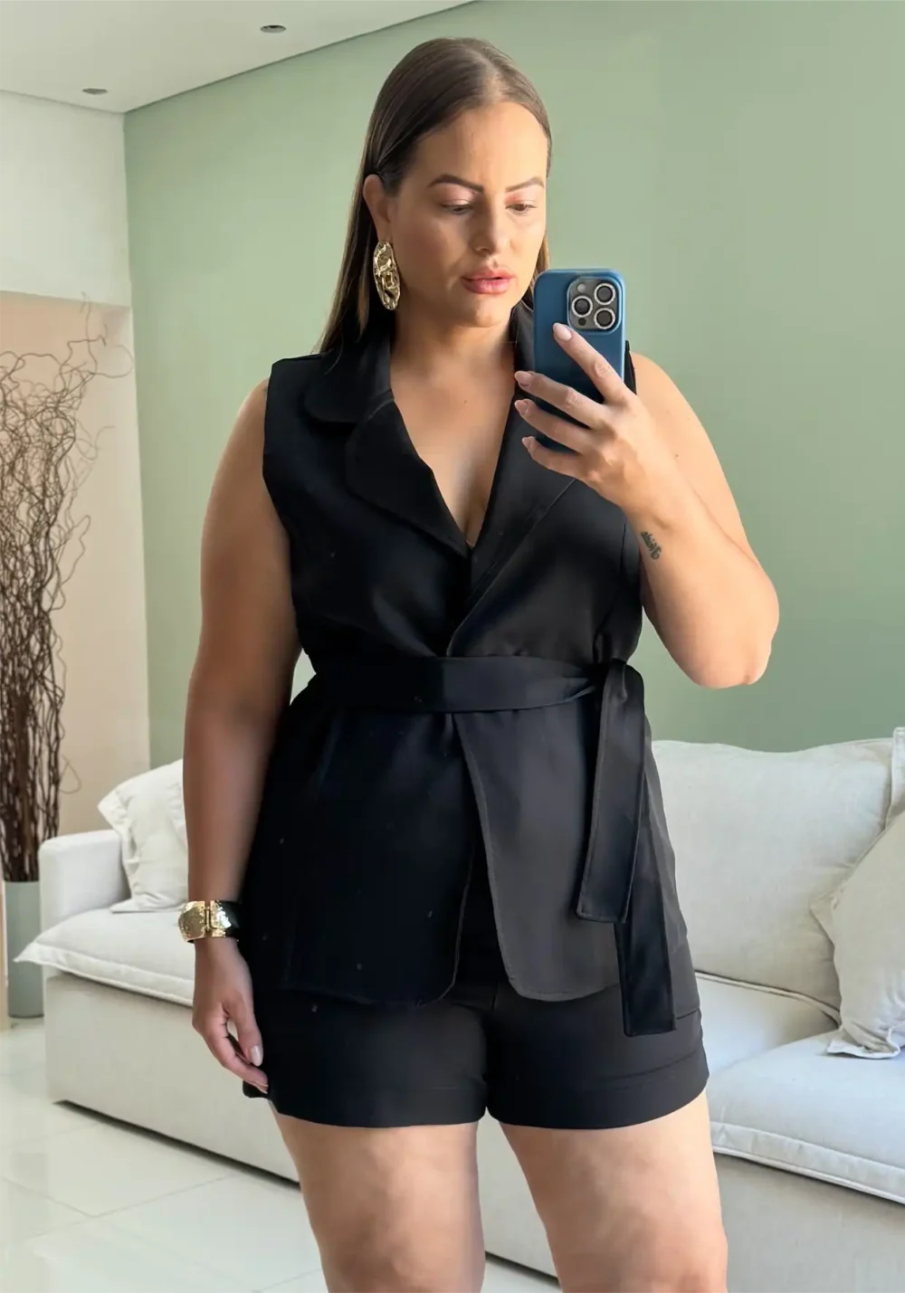 Conjunto Feminino Plus Size Colete + Shorts Ref 207275 Preto