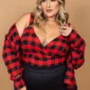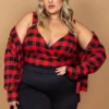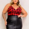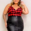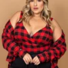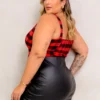 Cropped Feminino Plus Size Sem Manga 206886 Xadrez Vermelho