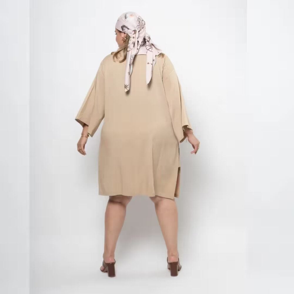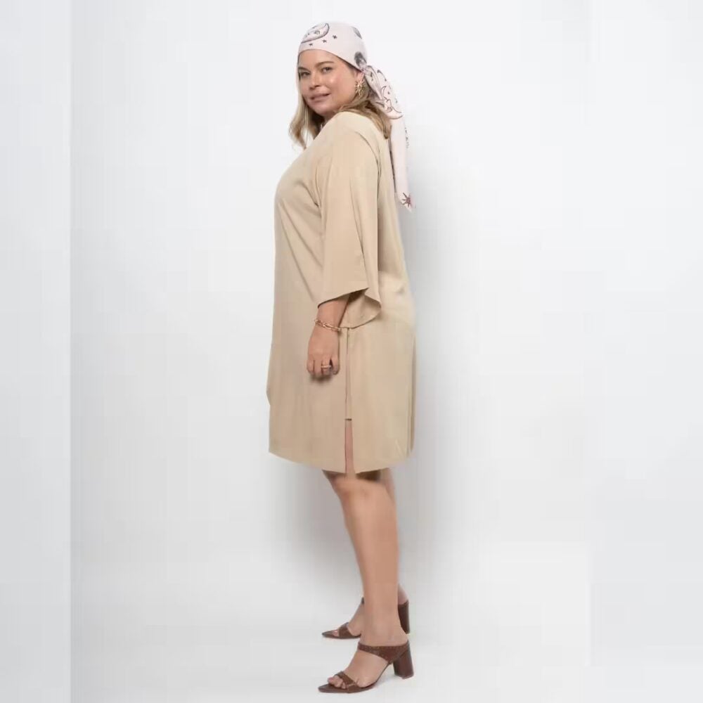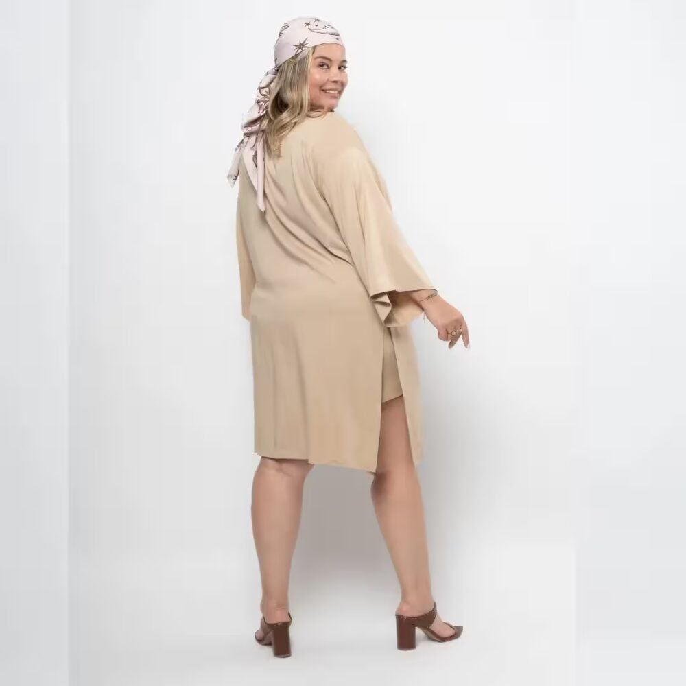 Kimono Manga Curta Plus Size Ref MR2054 Bege