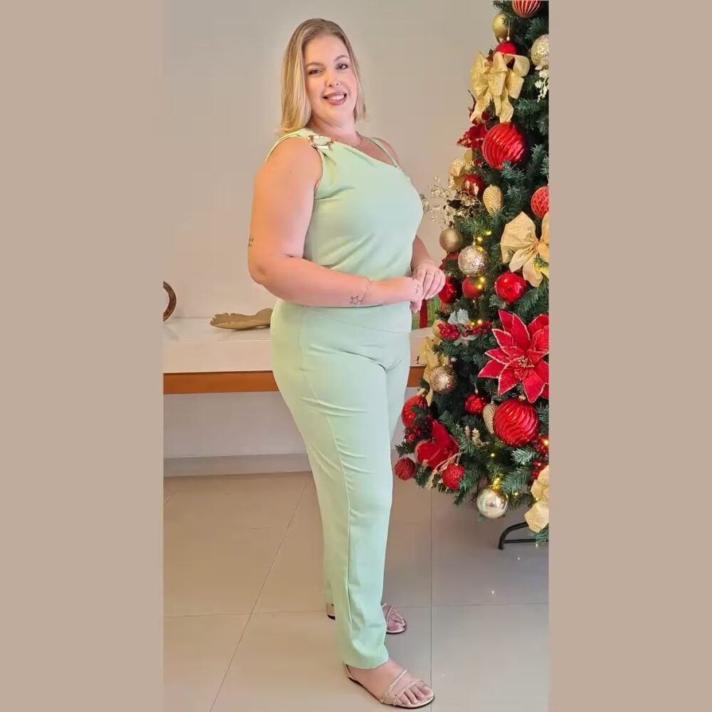 Macacão Longo Feminino Plus Size Sem Manga Ref 129560 Verde - 46