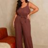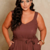 Macacão Longo Feminino Sem Manga Plus Size Ref 900821 Marrom