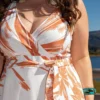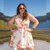 Macaquinho Feminino Sem Manga Plus Size Ref 900831 Estampa Laranja