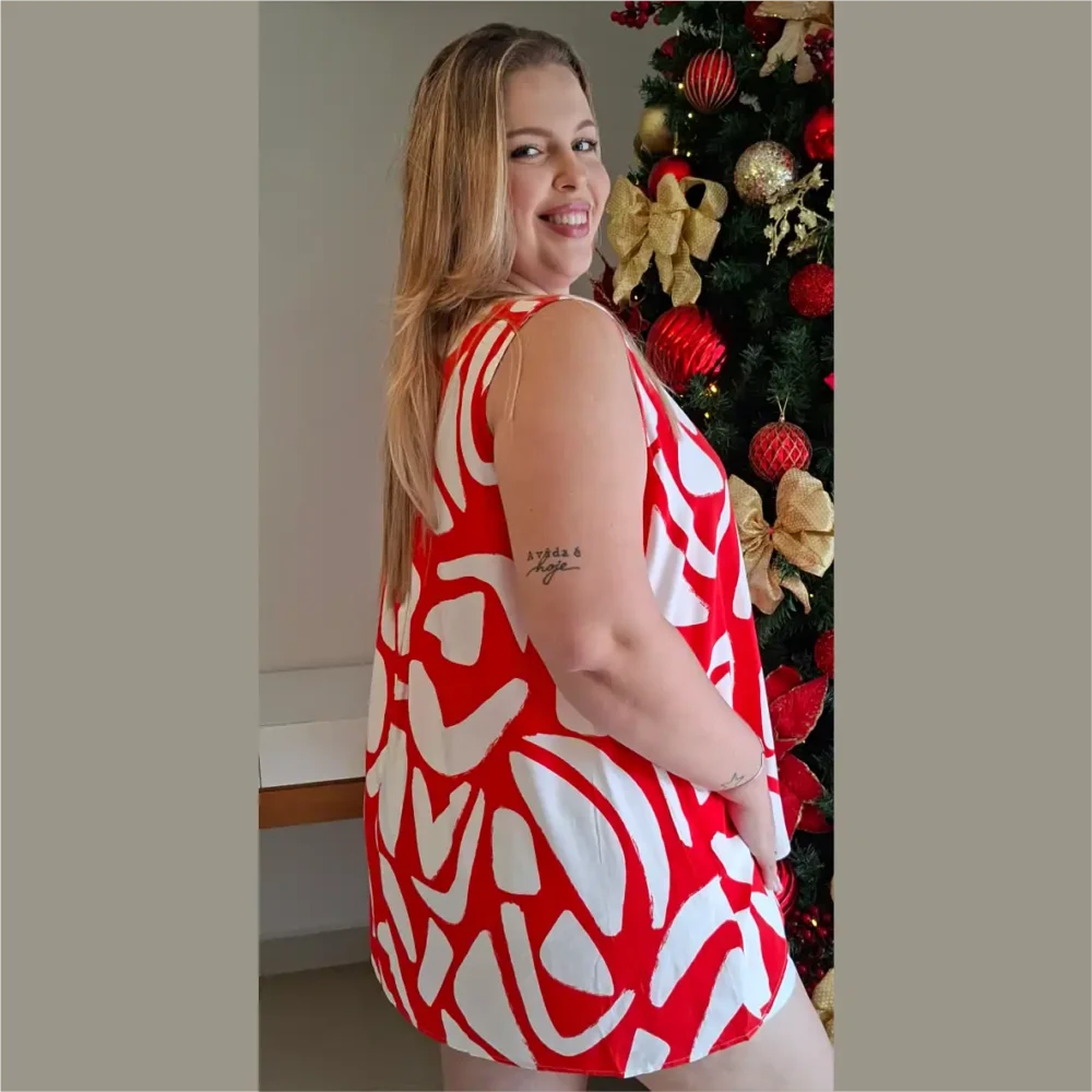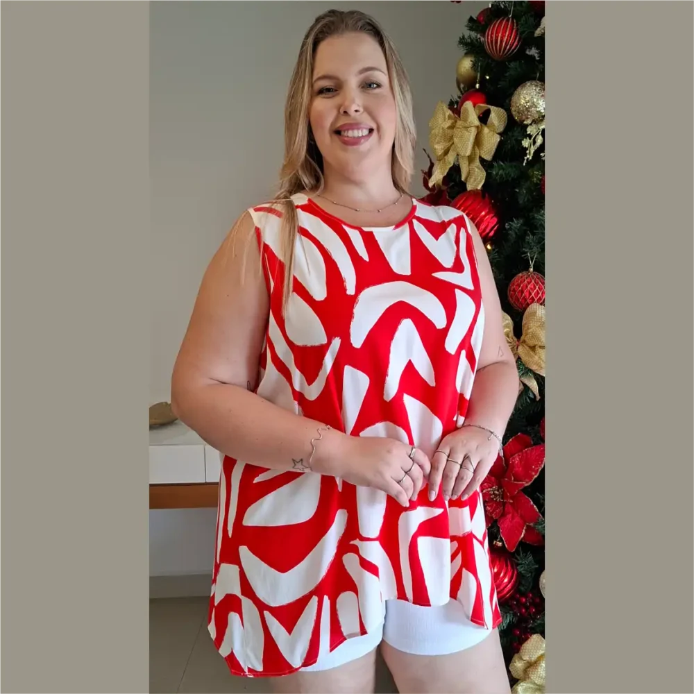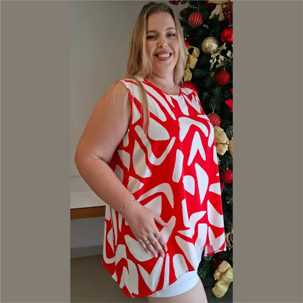 Regata Feminina Plus Size Ref 11749 Estampa Vermelha