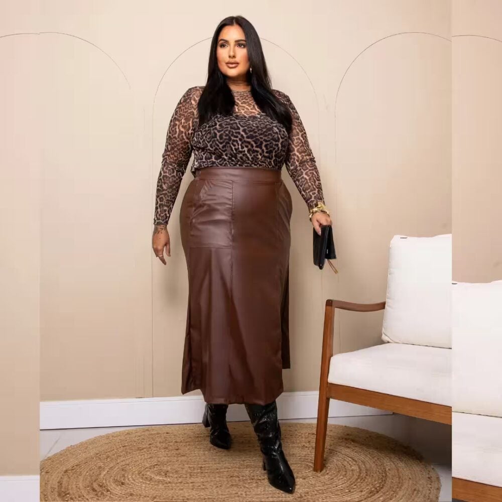 Saia Midi Plus Size Ref 207279 Marrom