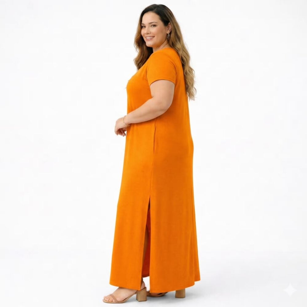 Vestido Longo Manga Curta Plus Size Ref. VLM-222 Laranja LUNA - 46
