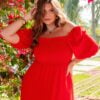 Vestido Longo Plus Size Manga Curta Ref 12298 Vermelho