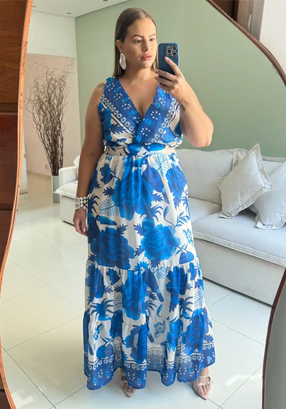 Vestido Longo Plus Size Sem Manga Ref 207282 Marrie Estampa Azul - 52