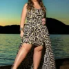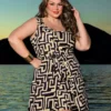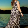 Vestido Longo Sem Manga Plus Size Ref 900829 Bege Preto