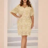 Vestido Manga Curta Plus Size Ref 52140042 Estampa Amarelo DORA