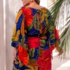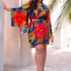 Vestido Manga Curta Plus Size Ref 900798 Estampa Azul