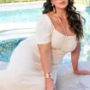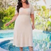 Vestido Mid Manga Curta Plus Size Ref 12859 Cru - 48