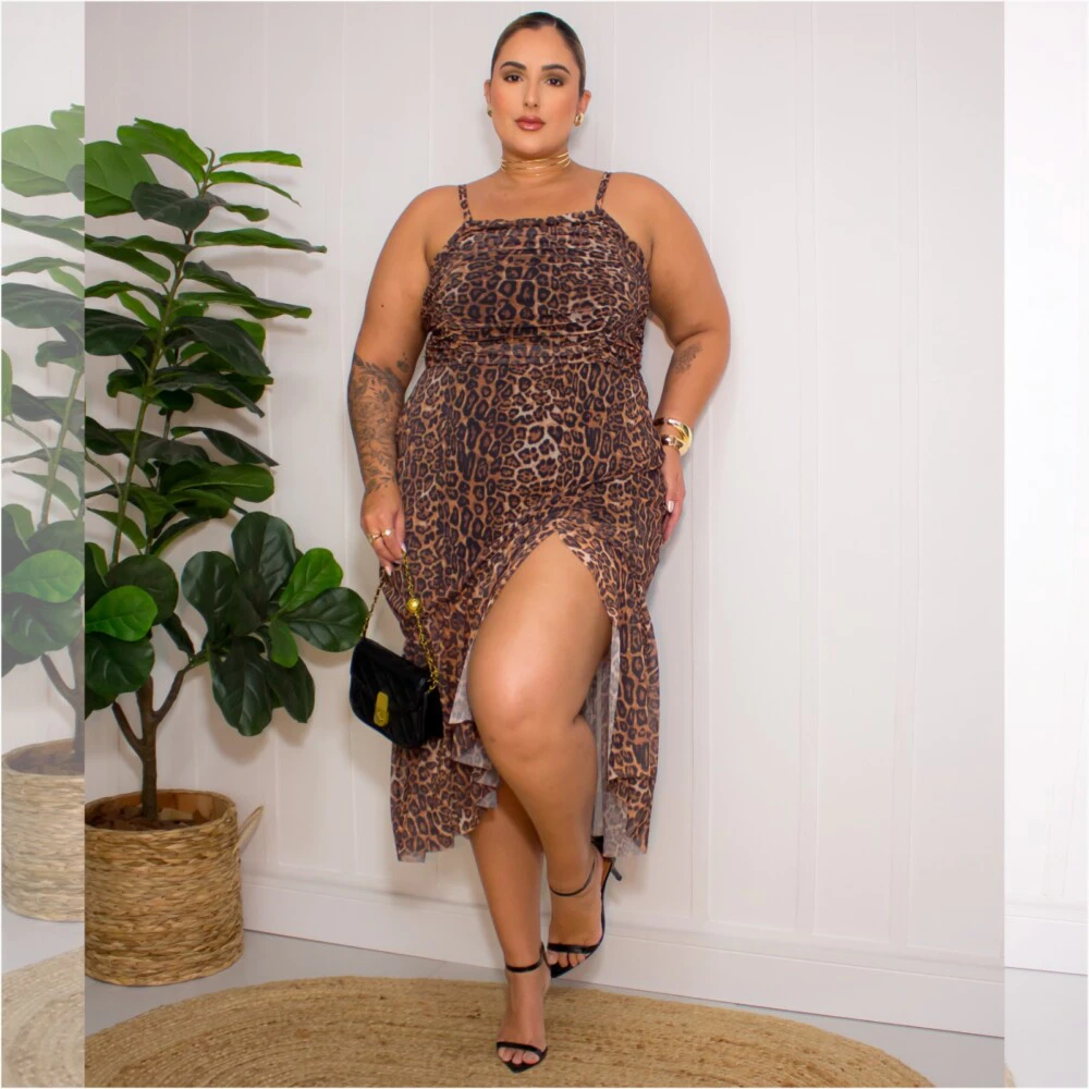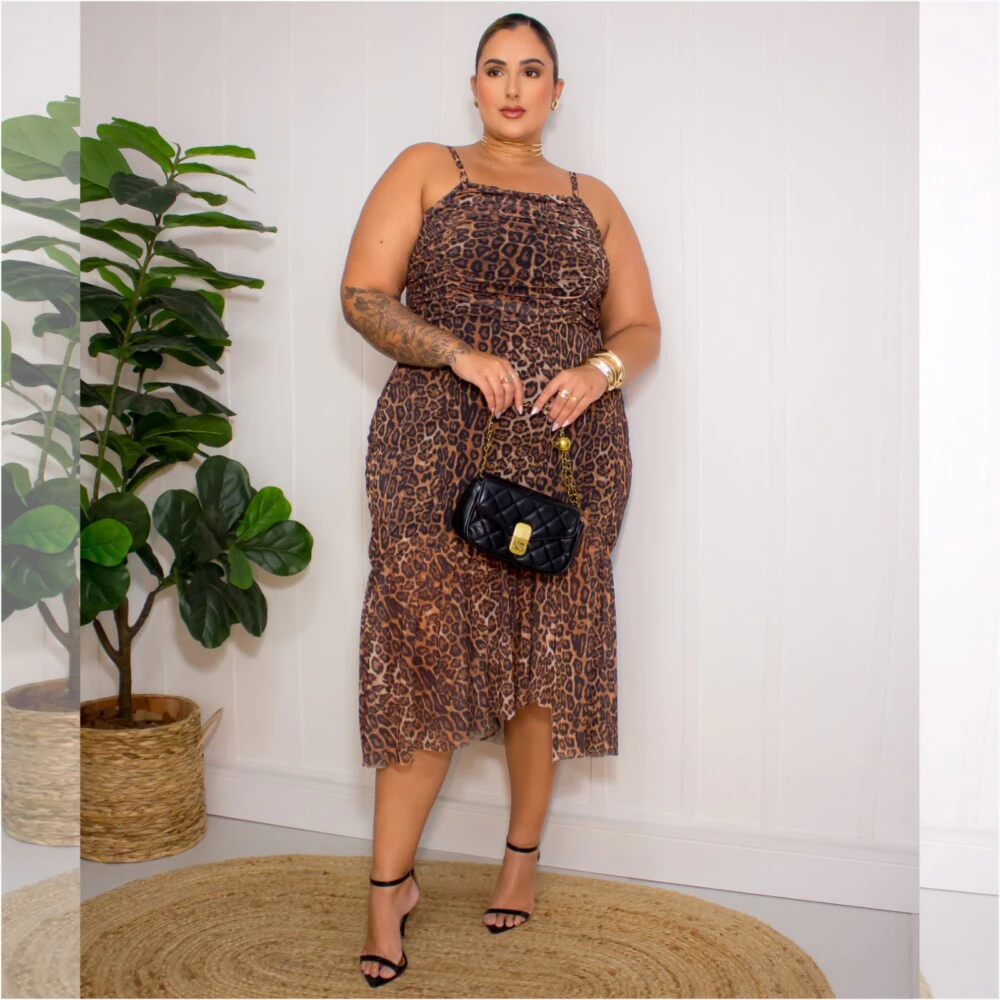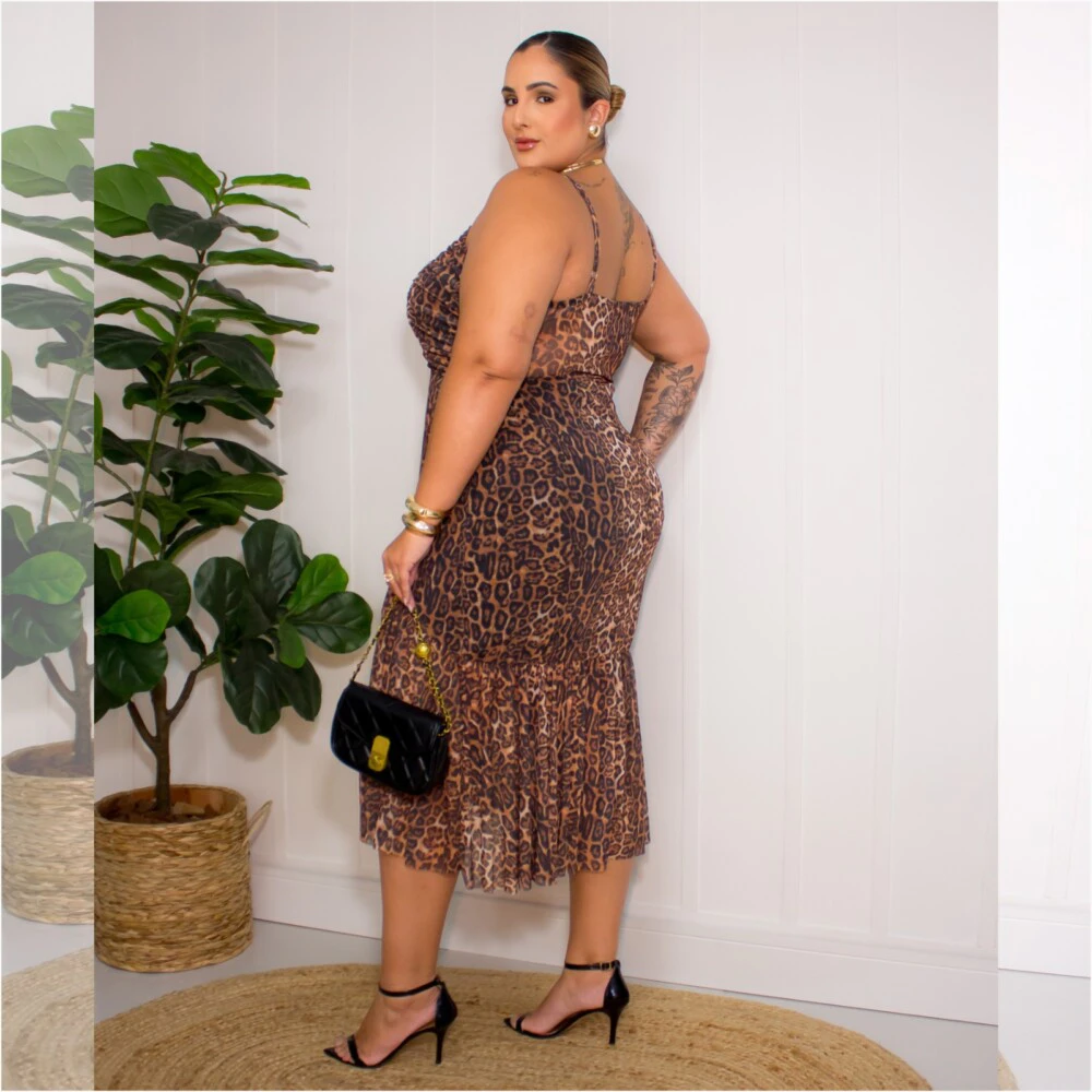 Vestido Mid Plus Size Sem Manga Ref 007184 Estampa Onça