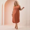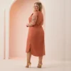 Vestido Mid Plus Size Sem Manga Ref C5158 Terracota