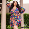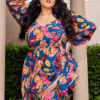 Vestido Manga Curta Plus Size  Ref 900817 Estampa Laranja