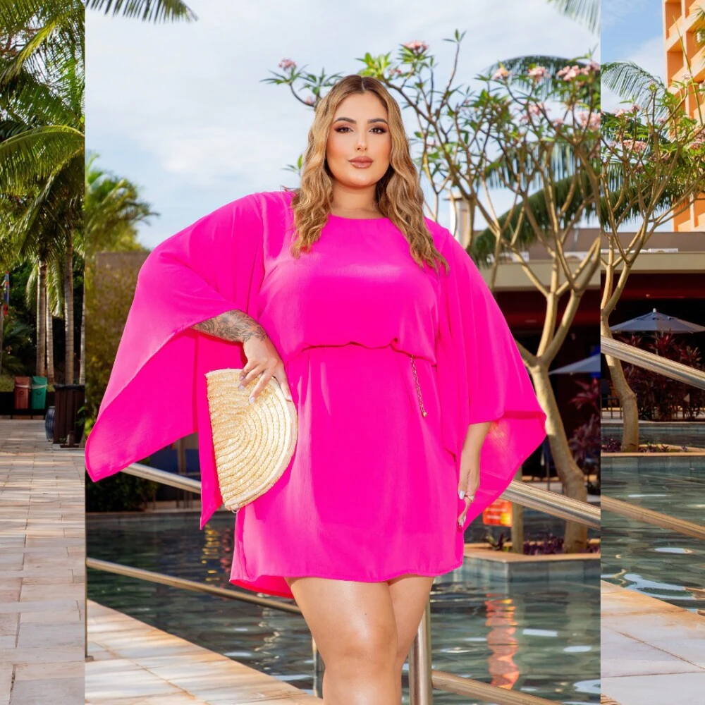 Vestido Plus Size Manga Curta Ref 900750 Pink