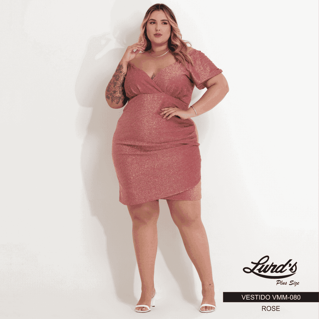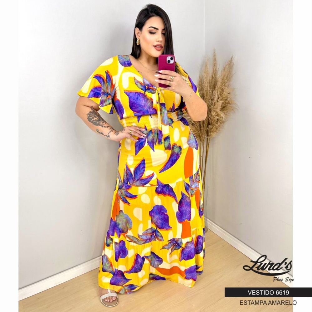 Vestido Plus Size Manga Curta Ref 900755 Estampa Laranja Rosa