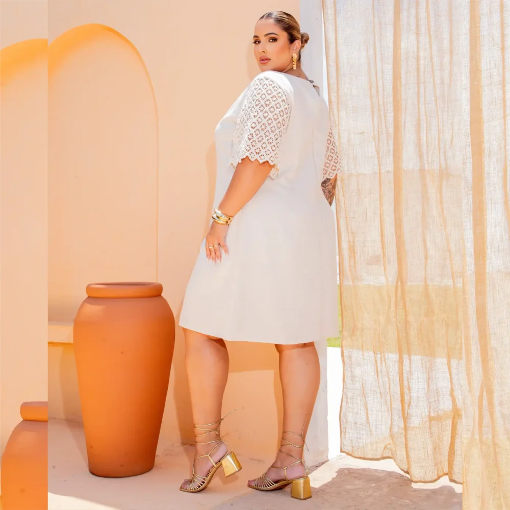 Vestido Plus Size Manga Curta Ref 900767 Cru - 46