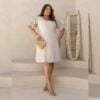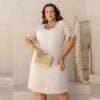 Vestido Plus Size Manga Curta Ref 900767 Cru