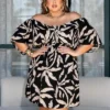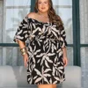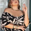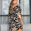 Vestido Plus Size Manga Curta Ref 900779 Preto Bege - 54